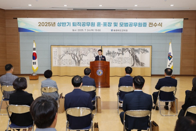 윤건영 교육감은 “공직의 여정을 마무리하시는 퇴직 공무원 여러분께 깊은 존경과 감사를 드린다. 충북교육을 단단하게 지켜준 힘이 충북교육의 역사로 남았다. 그동안 충북교육에 힘이 되어주셨던 것처럼 퇴직 이후에도 충북교육 곁에서 든든하게 함께 해주시기를 부탁드린다.”라며, “아울러, 모범공무원에 선정되신 분들도 지금처럼 충북교육의 중심에서 함께해 주리라 기대한다. 여러분이 보여주신 성실함과 책임감은 우리 교육청의 큰 자부심이다.”라고 말하며 응원과 격려의 말을 아끼지 않았다.