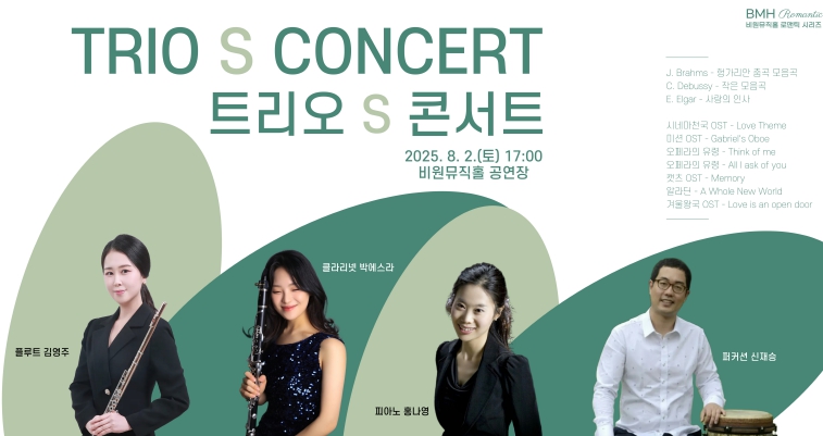 트리오S는 클래식과 대중음악을 넘나들며 청중에게 친근하면서도 깊이 있는 음악을 전하는 앙상블 팀이다.