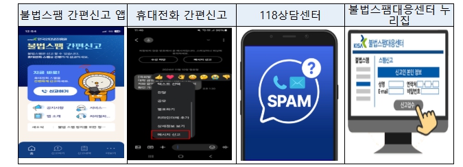 방미통위는 불법스팸이 확인될 경우, 불법스팸 간편신고 앱이나 휴대전화 간편신고 등을 통해 적극 신고해 줄 것을 당부했다.