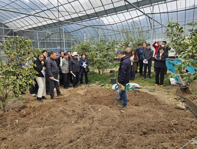 특히 묘목 식재 시에는 접목부가 토양에 묻히지 않도록 지면보다 약간 높게 심고, 뿌리가 자연스럽게 퍼지도록 하는 것이 중요하다는 점을 강조했다.