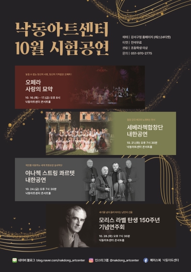 마지막 무대는 10월 28일 오후 7시 30분에 열리는 ‘모리스 라벨 탄생 150주년 기념연주회’로, 프랑스를 대표하는 작곡가 라벨의 음악 세계를 조명한다. 세기를 넘어 이어지는 낭만의 선율로 10월 시험공연의 대미를 장식할 것으로 보인다.