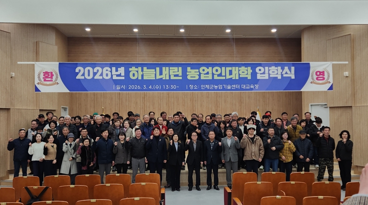 인제군은 지난 3월 4일 인제군농업기술센터 대교육장에서 ‘2026 하늘내린농업인대학’ 입학식을 열고 올해 교육과정 운영에 들어갔다고 밝혔다.