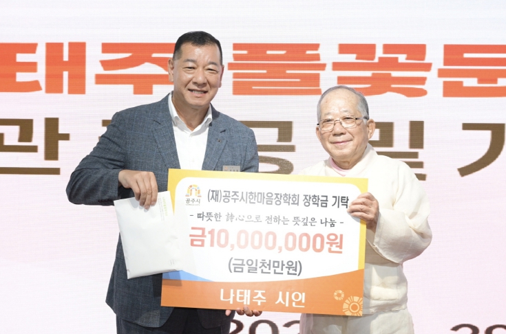 공주시한마음장학회 이사장인 최원철 시장은 “나태주 시인께서 지역 인재를 위해 보여주신 깊은 관심과 따뜻한 후원에 진심으로 감사드린다”며 “기탁해 주신 장학금은 공주의 미래를 이끌어갈 청소년들에게 소중히 전달해 배움의 기회를 넓히는 데 뜻깊게 활용하겠다”고 밝혔다.