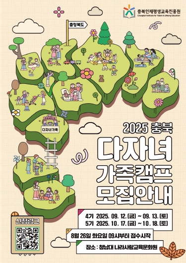 이번 다행다복 4기는 9월 12일~13일, 5기는 10월 17일~18일 1박 2일 일정으로 청남대 나라사랑교육문화원에서 진행된다. 참가 신청은 8월 26일 오전 9시부터 네이버 폼을 통해 선착순 접수하며, 충북 도내 11개 시·군별 1가족씩 총 11가족을 선발한다. 단, 특정 시·군에서 신청자가 없을 경우에는 접수 순서에 따라 다른 지역 가족이 추가로 선정될 수 있다. 네이버 폼은 포스터 하단 QR코드를 통해 링크에 접속할 수 있다.