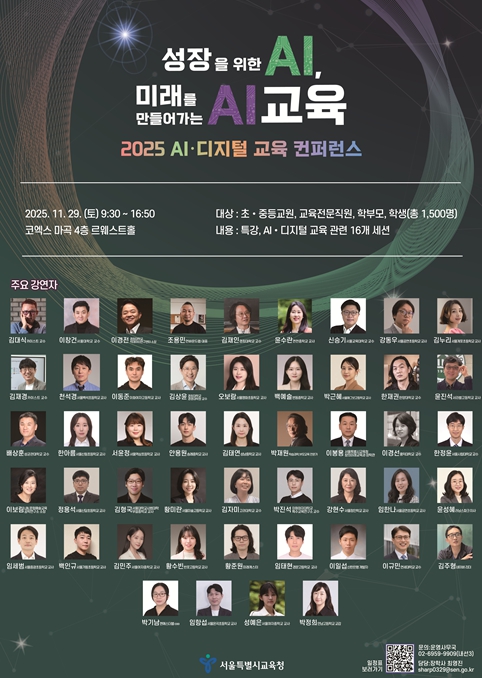 이번 컨퍼런스에는 교사·학교경영자·교육전문직·학부모·학생 등 약 1,500여 명이 참여하며, ‘성장을 위한 AI, 미래를 만들어 가는 AI 교육’을 주제로 비전 특강과 16개 세션을 운영한다. 이를 통해 AI·디지털 기반 우수 교육사례를 공유하고, 학교 현장에서 실천 가능한 수업 혁신과 정책 방향을 논의할 예정이다.