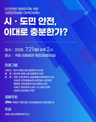 발제를 맡은 황상원 씨에스엘 보험중개 상무는“시민안전보험의 보장 범위가 전통적 재난에 국한되어 있고 지자체 별 보장 편차가 크다”라고 지적했으며, “기후재난, 디지털범죄, 성범죄 등으로 인한 피해도 보장할 수 있도록 생활안전 보험체계로의 전환이 필요하다”라고 강조했다.