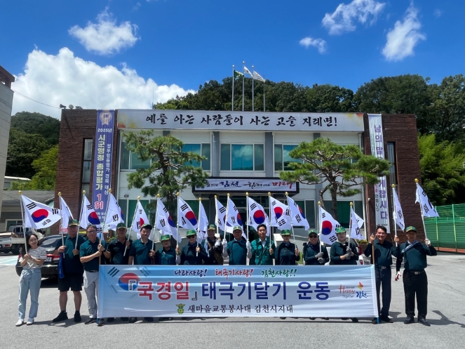 이번 행사는 순국선열들의 숭고한 희생정신을 기리고, 80주년을 맞이하는 광복절의 의미를 널리 알리기 위해 기획됐다. 새마을 교통봉사대원들은 지례면 교1리와 상부1리 마을 110여 가구를 일일이 방문하여 태극기와 거치대를 달아드리며, 올바른 태극기 게양 방법과 관리 요령을 함께 안내했다.