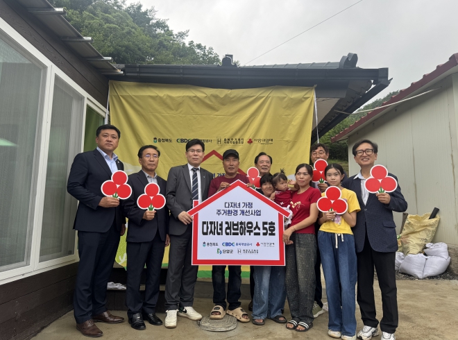 충북도의 다자녀 가정 주거환경 개선사업은 열악한 환경에서 자녀를 키우는 다자녀 가정에 가구당 5천만 원 규모의 주택 리모델링을 지원하는 민관 협력 프로젝트다.