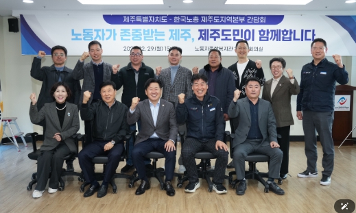 오영훈 지사는 29일 오후 노동자종합복지관에서 조순호 의장을 비롯한 한국노총 제주도지역본부 관계자들과 만나 고용·근로환경 등 노동 현장의 다양한 의견을 경청했다.