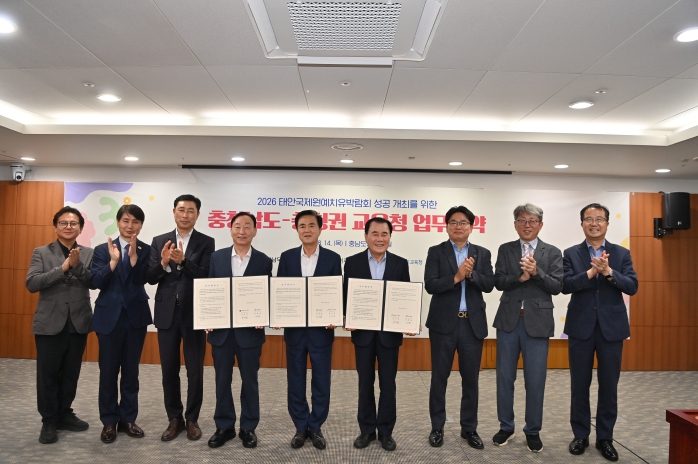 2026 태안국제원예치유박람회 조직위원회는 14일 도청 상황실에서 도와 도·대전·세종·충북 교육청이 업무협약(MOU)을 체결했다고 밝혔다.