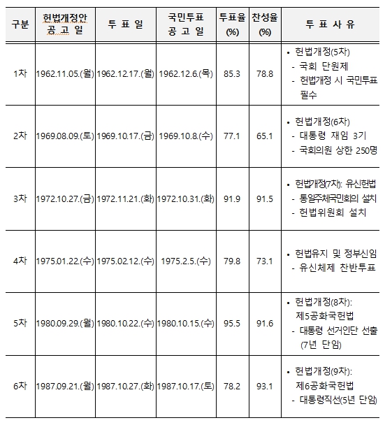 한편, 중앙선관위는 이번 헌법개정안이 국회에서 의결*되는 경우 국민투표와 제9회 전국동시지방선거가 동시 실시되므로, 재외국민투표관리팀 및 선거종합상황실을 확대·편성하고 관련 지침을 마련하는 등 국민투표를 대비한 각종 준비를 시작한다면서,국민투표 관리에 추가로 필요한 인력, 장비·물품 등도 문제없이 확보할 수 있도록 철저하게 준비할 것이라고 밝혔다.