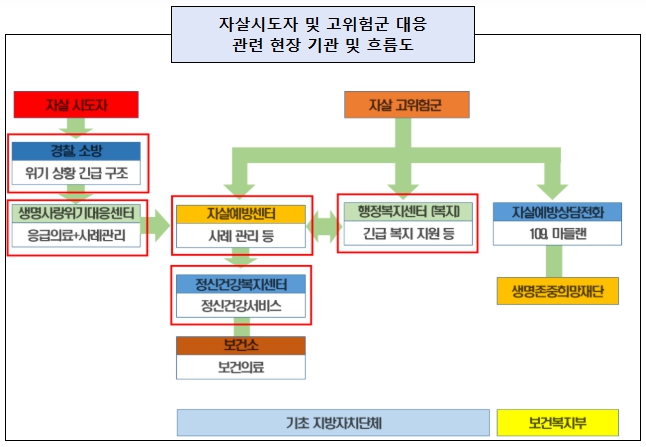 보건복지부는 올해 추경을 통해 25억 원을 확보하여, 자살 고위험군의 자살 시도자 치료비 지원사업(5억원)과 잠재적 고위험군의 조기발굴을 위한 민간 생명지킴이 활동 지원(4억원) 등을 강화했다. 자살 사망자 유족에 대한 원스톱 서비스 지원사업도 7월부터 사업 지역을 확대(종전 9개→12개 시도)했으며, 전국 확대를 추진할 계획이다.