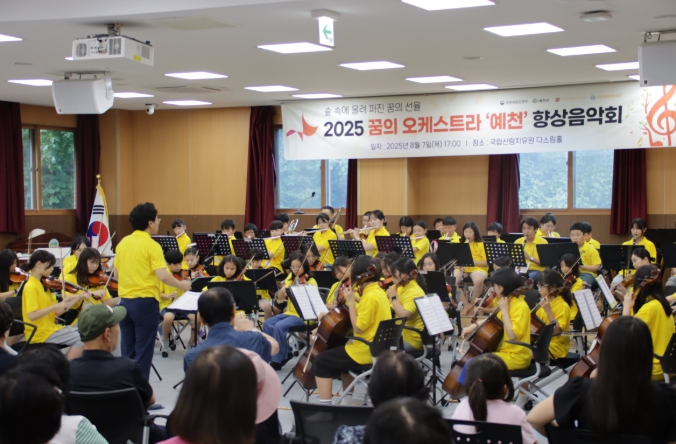 또한 국립산림치유원 방문객을 대상으로 ‘꿈의 오케스트라 예천 향상음악회 – 나눔숲 힐링 콘서트’가 열렸다. 단원들은 그동안 갈고닦은 실력을 무대에서 선보이며 자신감을 얻었고, 관람객들에게는 아름다운 선율을 통한 깊은 감동과 힐링의 시간을 선사했다.