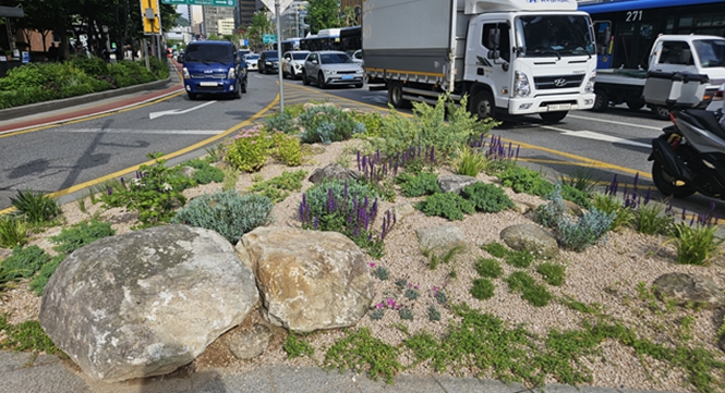 ‘교통섬정원’은 교차로 사이 중앙분리대, 회전교차로 등에 조성된 것으로 회색 콘크리트 바닥을 정원으로 바꿔 보행자는 물론 운전자들에게도 쉼을 제공하고 있다. 현재 종로구 혜화로, 성북구 한천로 일대 등 77곳에 조성돼 있다.