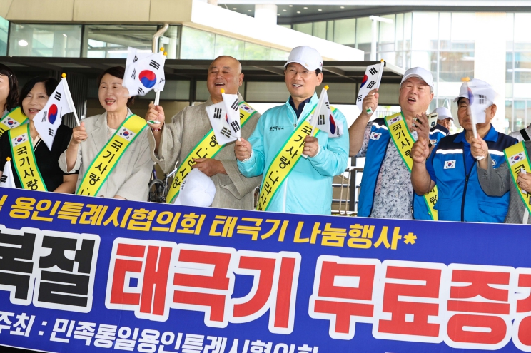 이 시장은 “태극기는 대한민국 국민 자긍심의 표상이고, 나라 사랑의 상징”이라며 “우리 시민들의 애국심을 더욱더 고취하고, 광복 80주년이 되는 올해 광복의 의미를 시민들이 잘 되새길 수 있도록 태극기 나눔 행사를 준비하신 분들께 존경과 감사의 뜻을 전한다”고 말했다. 그러면서 “태극기 나눔을 통해 시민들의 나라 사랑, 지역 사랑이 한층 더 커지고, 그것이 대한민국과 용인 발전의 동력이 되면 좋겠다”고 덧붙였다.