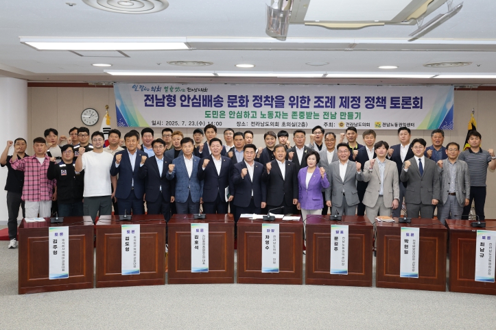 전라남도의회는 7월 23일 오후 2시, 도의회 초의실에서 ‘전남형 안심배송 문화 정착을 위한 조례 제정 정책토론회’를 개최했다.