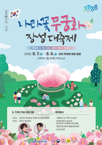 ‘무궁화 대축제’는 산림청이 광복 80주년을 기념해 나라꽃 무궁화의 의미와 아름다움을 온 국민과 나누기 위해 마련한 행사다. 장성군은 지난해 무궁화 기반시설 구축, 지자체장 관심도 등의 평가항목에서 높은 점수를 받으며 수원시, 춘천시, 완주군과 함께 축제 개최지에 이름을 올렸다.