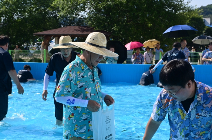 참가자들은 물살을 헤치며 금빛 은어를 손끝으로 낚아 올리기 위해 진지하게 도전했고, 경기가 끝날 때마다 현장은 환호와 박수갈채로 가득 찼다.