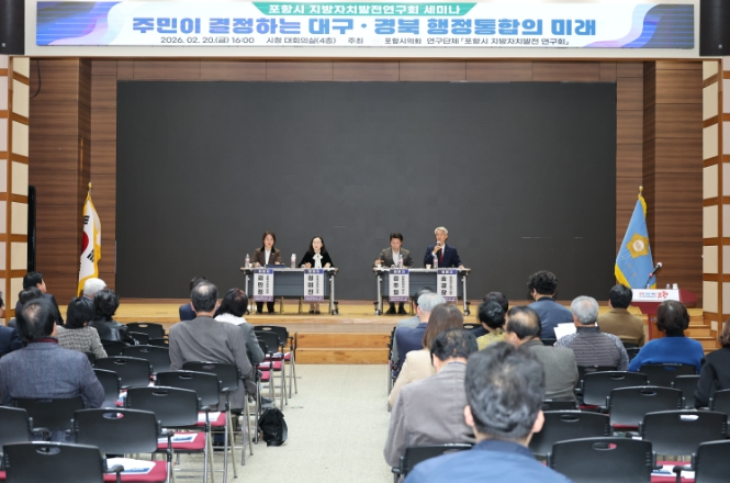 발제자로 나선 김주일 한동대학교 교수는 기조 발제를 통해 대구·경북 행정통합법(안)이 포항시에 미치는 영향을 분석했다. 이어 진행된 패널토론에서는 송경창 포항테크노파크 원장, 정미진 청송군의회 의원, 김민정 포항시의회 의원이 참여해 심도 있는 논의를 펼쳤다.
