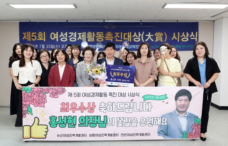 홍성현 의장은 그간 충남 여성의 고용환경 개선과 인력개발을 위한 정책 제언은 물론, 관련 예산 확보와 여성인력개발센터 운영 지원 등에 적극적으로 나서 높은 평가를 받았다.