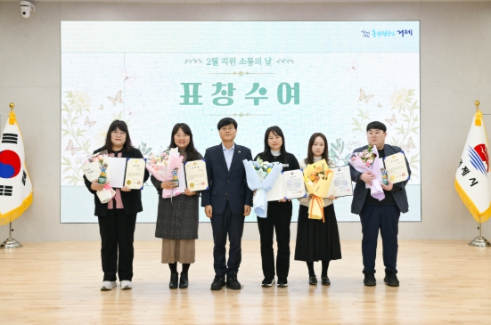 표창 수여식에서는 ‘2025년 의료급여사업 평가 우수기관’ 선정에 따른 보건복지부장관 표창(공은미 사회복지과장)을 비롯해 국가보훈부 및 보건복지부 업무유공 표창(신원희·최수은 주무관)이 전수됐다. 이어 이달의 우수공무원(문화예술과 류선영외 3명)과 2025년 하반기 적극행정 우수공무원(농업지원과 신서희외 5명)에 대한 시상도 함께 진행됐다.