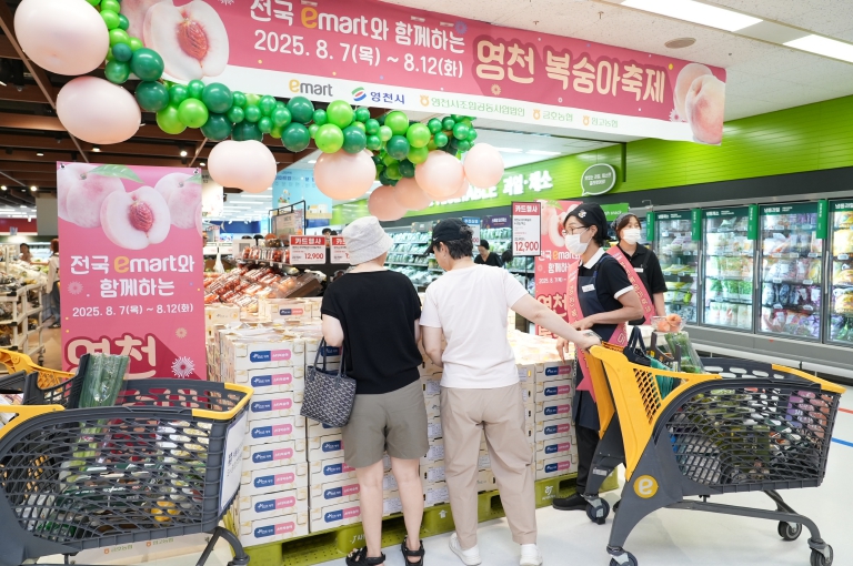 최기문 시장은 “이상기후와 각종 자연재해로 복숭아 수확량이 예년보다 다소 줄었지만, 영천 복숭아를 기다리는 소비자들을 위해 고품질 복숭아를 특별히 준비했다”며, “이번 이마트 판촉행사를 계기로 스타영천 복숭아의 우수성을 전국에 알리고, 앞으로도 영천의 다양한 과일과 농특산물이 소비자들에게 더욱 쉽게 다가갈 수 있도록 홍보와 판촉행사를 꾸준히 추진하겠다”고 말했다.