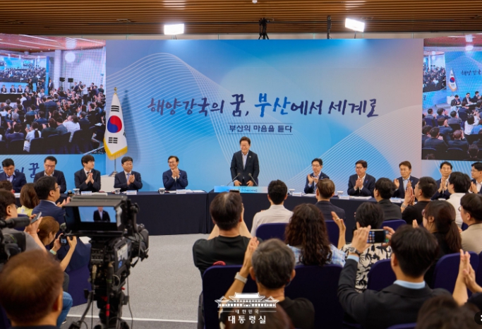 이 대통령은 이날 오후 부산 부경대 컨벤션센터에서 열린 타운홀미팅 '부산의 마음을 듣다' 간담회에서 "해수부를 포함한 관련 국가기관들, 가능한 범위에서 신속하게 집행 중"이라며 이 같이 밝혔다.