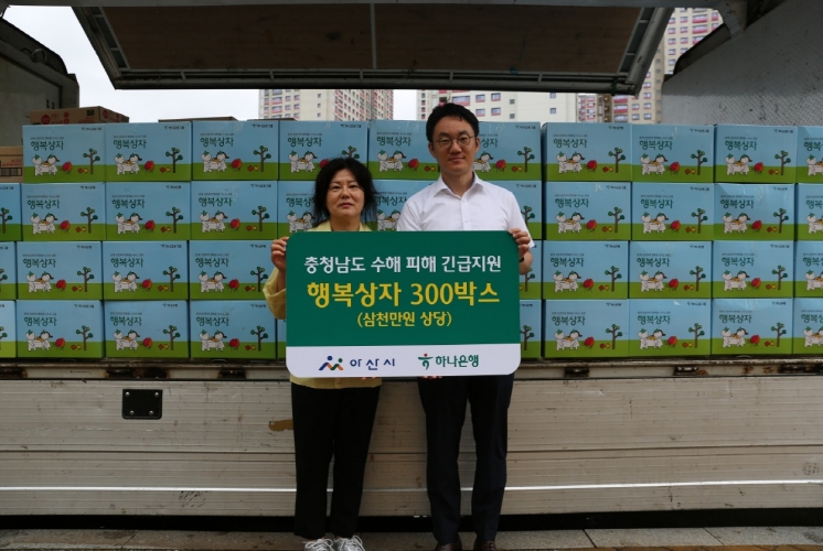 하나금융그룹 관계자는 “집중호우로 어려움을 겪고 있는 아산시민 여러분께 조금이나마 위로와 도움이 되기를 바란다”며, “앞으로도 지역사회와 함께하는 따뜻한 금융을 실천해 나가겠다”고 전했다.