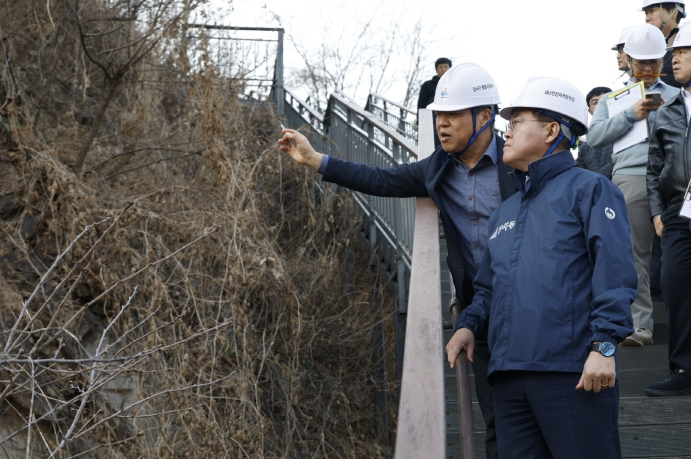이후 진 구청장은 염창산으로 이동해 현장점검을 이어갔다. 염창 둘레길 약 700m 구간을 걸으며 둘레길 보행자 안전, 절개지 위험 요소 등을 집중 점검했다.