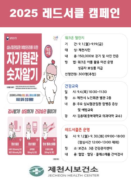 ‘레드서클 캠페인’은 보건복지부와 질병관리청이 주관하는 전국 단위 건강생활실천 캠페인으로 혈압·혈당·콜레스테롤 등 주요 건강지표를 확인하고 심뇌혈관질환 예방을 위한 실천을 독려하는 데 목적이 있다. ‘자기혈관 숫자알기’ 슬로건 아래 진행되는 이번 캠페인은, 시민 스스로 자신의 건강 수치를 알고 건강생활을 실천하도록 유도하고 있다.
