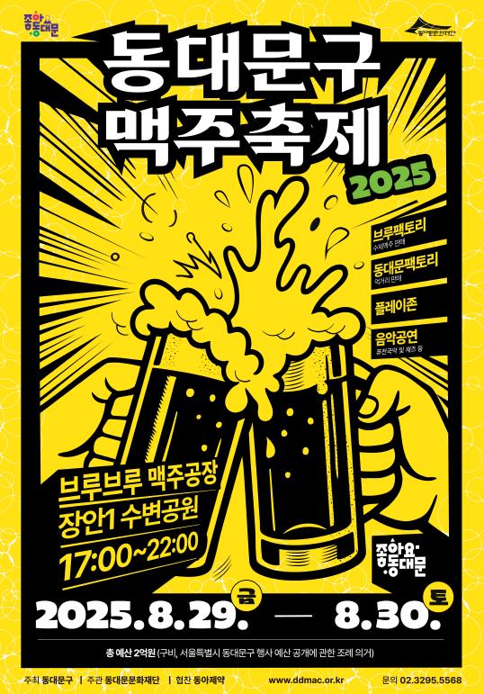 또한 동대문구 소재 기업 동아제약이 협찬사로 참여해 ‘모닝케어’ 젤리스틱을 제공, 현장 이벤트에 활용할 예정이다. 세부 프로그램과 최신 소식은 동대문구 맥주축제 공식 인스타그램을 통해 확인할 수 있다.