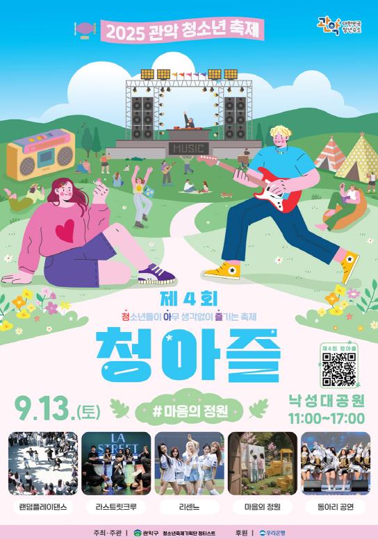 올해로 4회째를 맞은 청아즐은 ‘청소년들이 아무 생각 없이 즐기는 축제’의 줄임말로, 청소년들이 직접 기획하고 참여해 열정과 창의성을 펼치는 관악구 대표 청소년 축제이다.