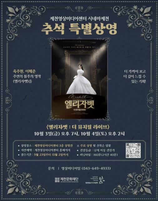 이번 2025 시네마제천 추석 특집은 민족 대명절 한가위를 맞아 제천 시민과 귀성객들이 평소 접하기 힘든 뮤지컬 공연을 가족과 함께 감상하며 명절을 더욱 풍성하게 즐길 수 있도록 마련됐다.