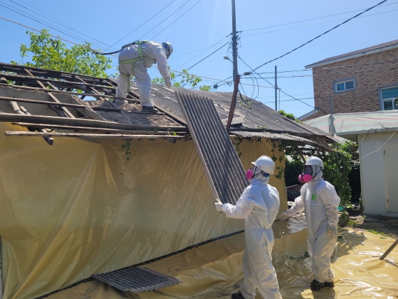 지원 기준은 주택은 최대 400만 원, 창고·축사·노인 및 어린이 시설은 최대 500만 원까지이며, 취약계층의 경우 철거비 전액 및 지붕개량 최대 1,000만 원까지 지원한다.