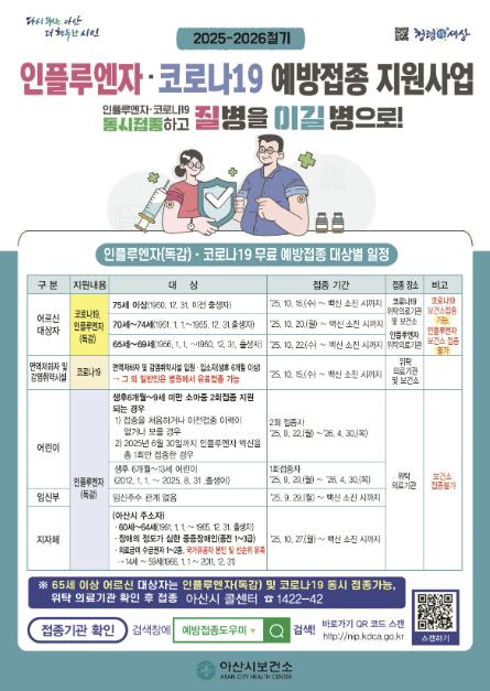 최원경 아산시보건소장은 “코로나19는 매년 새로운 변이가 발생하는 만큼 고위험군의 예방접종이 무엇보다 중요하다”며 시민들의 적극적인 참여를 당부했다.