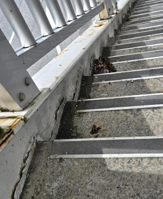 A보도육교와 B보도육교의 경우 서면 감사 시 확인한 정기안전점검 용역보고서에서는 B등급(양호)으로 확인됐다. 그러나 현장 감사시 실제 바닥판의 부식이 심해 구멍이 뚫린 부위가 발생하거나 육교 상부구조에서 전달되는 하중을 하부구조에 안전하게 전달하는 장치의 부식이 심해 구조적 결함이 우려됐다. 도는 추가적인 점검을 이행하도록 요구했다.