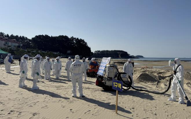 태안군은 지난 4일 소원면 천리포 해수욕장에서 태안해양경찰서와 보령해양경찰서, 대산해양수산청, 서산시, 국립공원공단, 해양환경공단, 태안소방서, 해양구조협회 등 19개 기관·단체·업체 관계자 총 100여 명이 참여한 가운데 ‘2025년 민·관 합동 해안방제 교육·훈련’을 진행했다고 밝혔다.