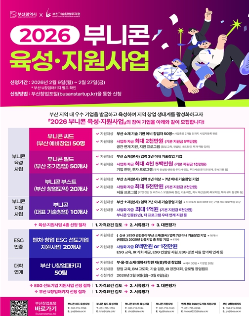 박형준 시장은“'2026년 부니콘 육성·지원사업'은 창업기업의 성장과 성과 창출에 집중하는 전환점”이라며, “부산에서 창업기업이 성장하고 투자받아 도약할 수 있도록 실질적이고 현장 중심의 창업지원 정책을 지속 추진하겠다”라고 밝혔다.