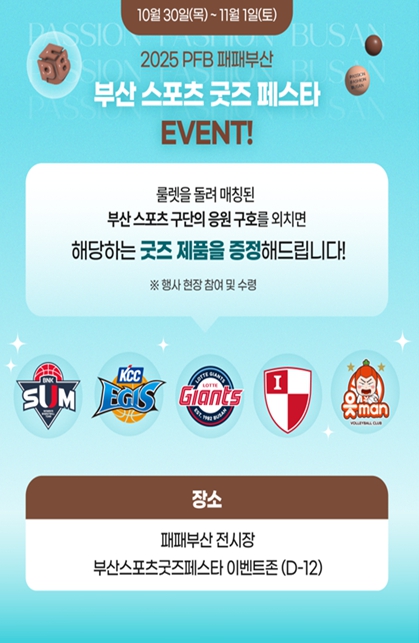 [특별 전시 공간(부스)] 부산 연고 프로스포츠 5개 구단이 한 공간에 참여하는 '통합 팬 컬처 존'으로, 각 구단의 ▲유니폼 ▲티셔츠 ▲모자 등 대표 패션 팬 상품(굿즈)을 한자리에서 만나볼 수 있으며, 큐알(QR) 코드를 활용한 온라인 판매도 할 예정이다.
