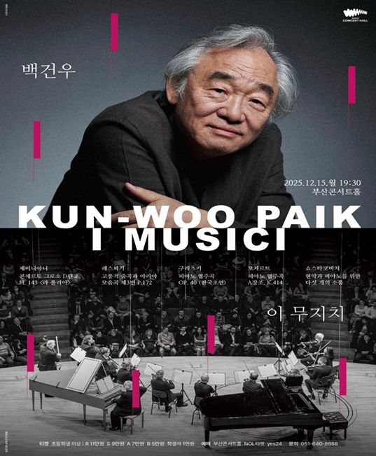 70년 경력의 피아니스트 백건우와 창단 70년을 넘긴 '이 무지치'의 부산 첫 협연은 세계적인 거장들을 함께 만날 수 있는 소중한 기회로, 부산 관객들에게 깊은 감동을 선사할 것으로 기대된다.
