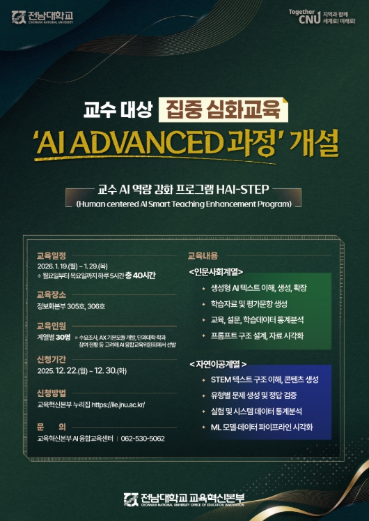 한편, 전남대학교는 2026년 3월 보건의료계열 AI ADVANCED 과정을 추가로 운영할 예정이며, 인문사회계열과 자연이공계열 과정도 방학 기간을 활용해 정기적으로 운영할 계획이다.
