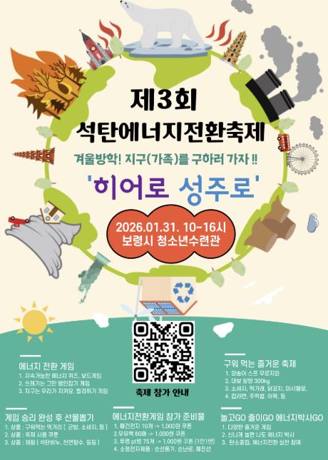 이용희 에너지과장은 “이번 축제는 과거와 미래가 공존하는 다채로운 체험 프로그램이 준비된 만큼 우리 지역의 역사적 자산인 석탄산업과 미래 에너지전환을 자연스럽게 이해할 수 있는 소중한 기회가 될 것”이라며 “행사 당일 추운 날씨가 예상되는 만큼 따뜻한 옷차림으로 방문해 주시길 바라며, 많은 관심과 참여를 당부드린다”고 말했다.