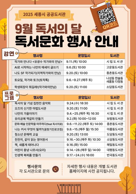 강연과 프로그램 운영 일시와 개최 장소 등은 모두 상이하므로 자세한 사항은 시 통합도서관 누리집에서 확인하면 된다.