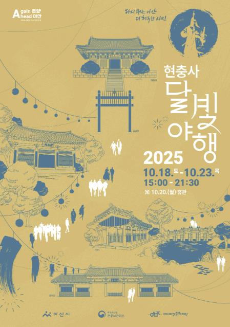 올해 달빛야행은‘이순신의 자취를 걷다’를 주제로, 현충사의 야간 정취를 느낄 수 있는 경관 조명·미디어파사드와 함께 기획됐으며, 다양한 장르의 공연과 체험 프로그램이 운영될 계획이다.