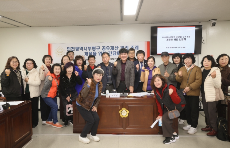 간담회에는 부평구청 소관부서와 갈산1·2동, 십정1·2동 주민자치회 및 통장자율회 등이 참석하여 공유재산 관리에 관한 다양한 의견을 나눴으며, 조례안은 제273회 정례회에 안건으로 제출되어 심사될 예정이다.