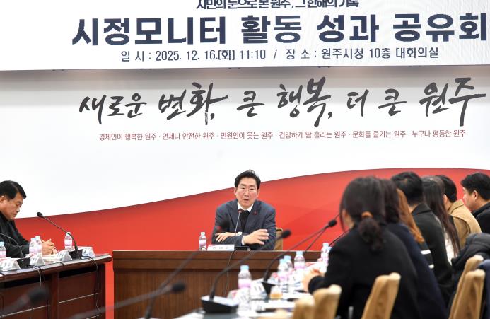 원강수 원주시장은 “시정모니터 위원들의 노고에 감사드린다”라며, “앞으로도 적극적인 모니터링을 통해 살기 좋은 원주를 만드는 데 힘써주시길 바란다”라고 말했다.