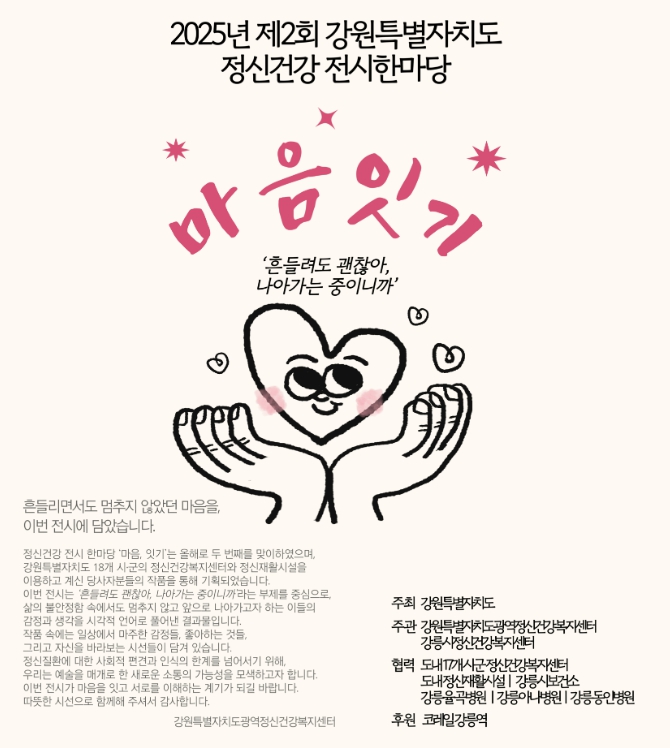 이번 전시한마당은 시민 누구나 참여할 수 있는 열린 행사로, 지역사회 정신건강 인식 향상 및 생명존중문화 확산, 정신질환 당사자의 자존감 고취 및 사회참여 증진의 효과가 기대된다.