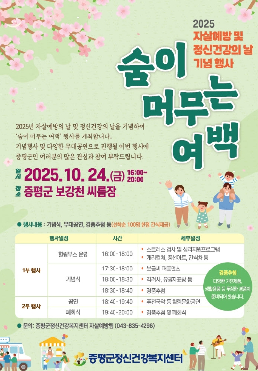 손민근 센터장은 “이번 행사를 서로의 마음을 보듬고, 생명의 소중함을 되새기는 자리로 만들고 싶다”며 “군민들이 잠시 멈춰서 자신의 마음을 위로하고 이웃과 함께 공감하는 시간이 되길 바란다”고 말했다.