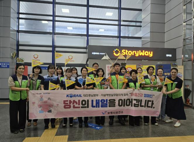 이번 캠페인은 보령시가 주관하고 코레일 대전충남지역본부, 자살예방실무협의체가 협력하여 마련했으며, 대천역을 방문하는 시민과 역사 이용객을 대상으로 마음건강 자가검진과 자살예방 홍보 활동을 펼쳤다.