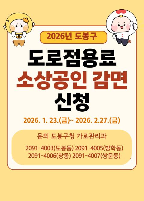오언석 도봉구청장은 “이번 감면 조치가 고물가와 경기침체로 이중고를 겪고 있는 소상공인들에게 작은 보탬이 되길 바란다.”라며, “지원 대상자분들은 기한 내에 신청해 혜택을 꼭 받으시길 바란다.”라고 말했다.